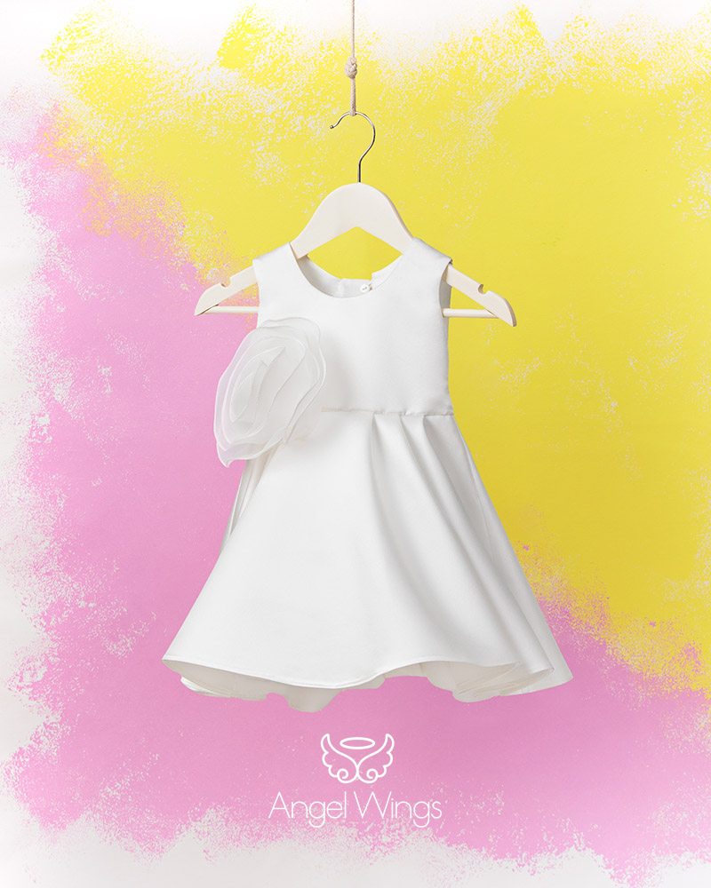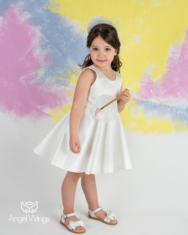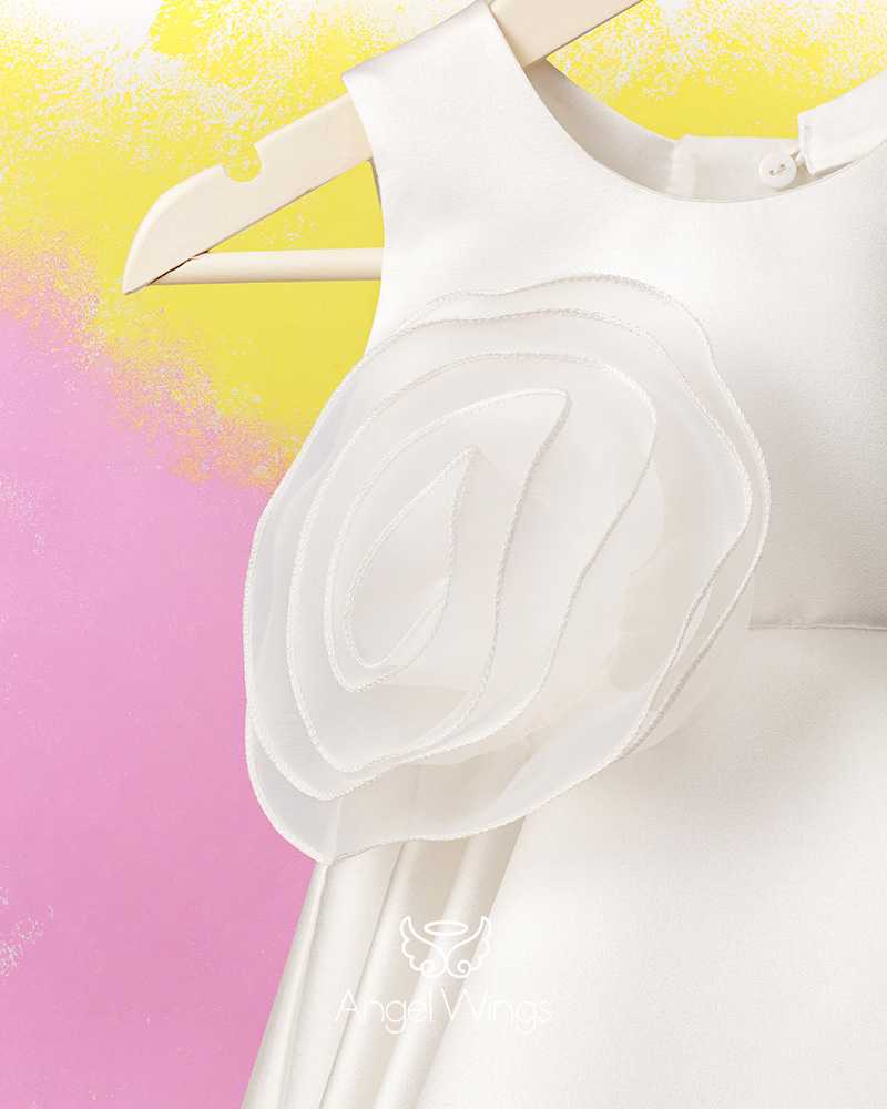 Ένα ρούχο σχεδιασμένο για αυτούς που λατρεύουν την κομψότητα αλλά και το μοντέρνο design. Υπέροχο φόρεμα σε off white χρώμα από σατέν ντουσέζ, με μοναδικό σχέδιο τρίγωνο στην πλάτη και oversize διακοσμητικό λουλούδι από οργαντίνα.