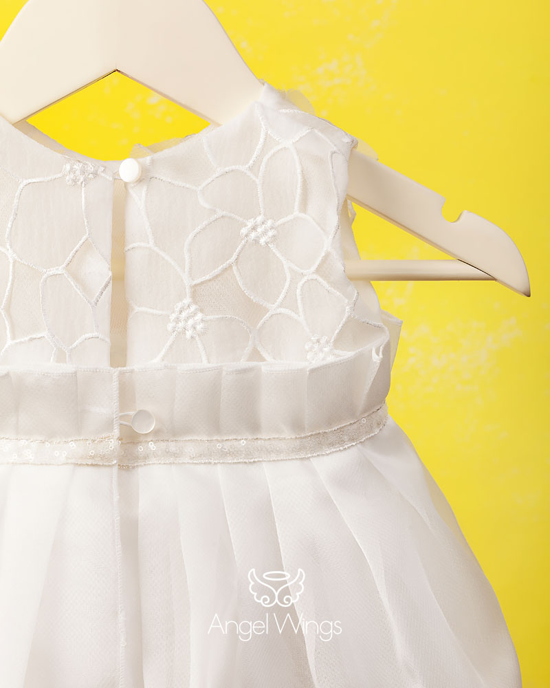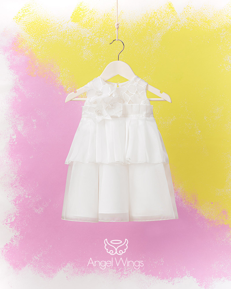 Για αυτούς που τους αρέσει να ξεχωρίζουν με τις επιλογές τους, αυτό το πανέμορφο φόρεμα αμπίρ σε off white χρώμα είναι η τέλεια επιλογή. Το μπούστο είναι φτιαγμένο από κεντημένο γκοφρέ ύφασμα οργαντίνας και 3d διακοσμητικά λουλούδια απλικέ, ενώ η φούστα αποτελείται από δυο στρώσεις βολάν από οργαντίνα σατινέ.