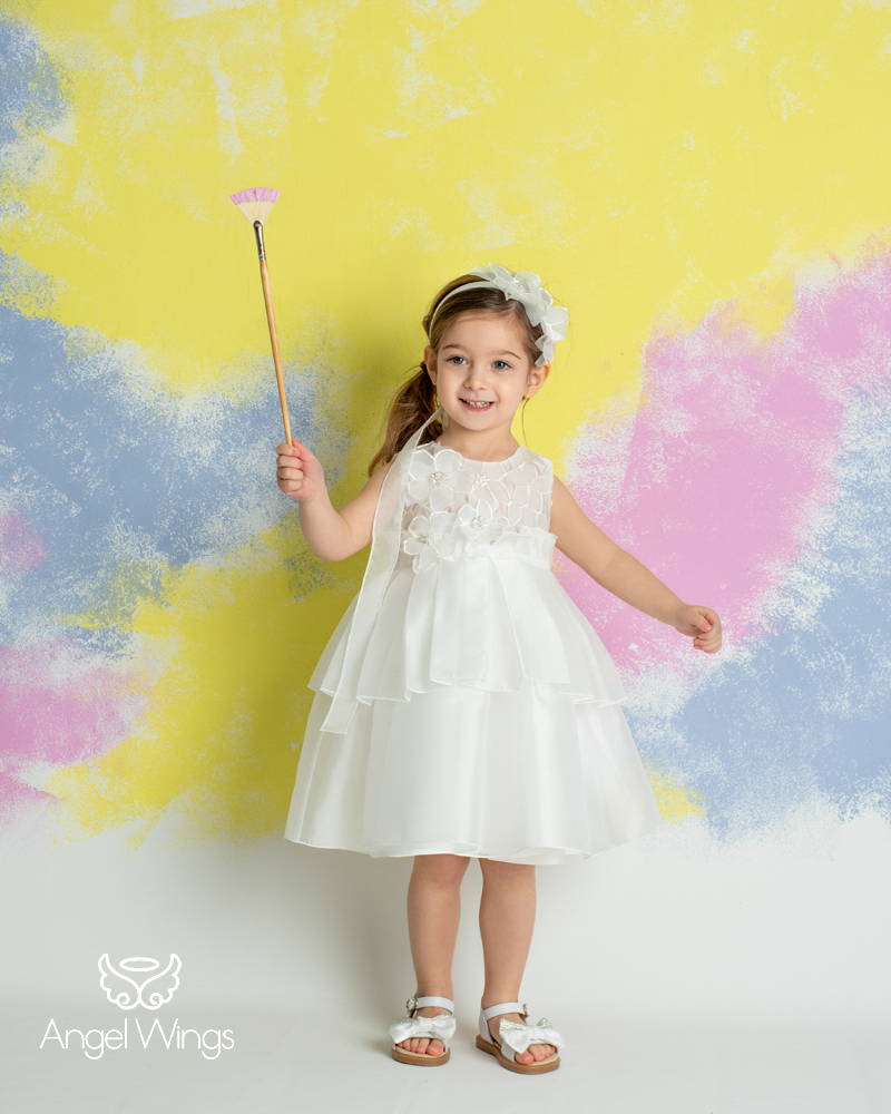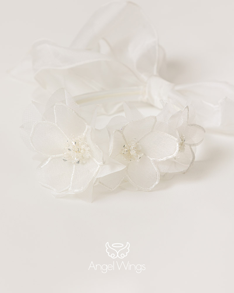 Το σύνολο ολοκληρώνεται με στεφάνι για τα μαλλιά διακοσμημένο με 3d απλικέ λουλούδια ασορτί με το φόρεμα.