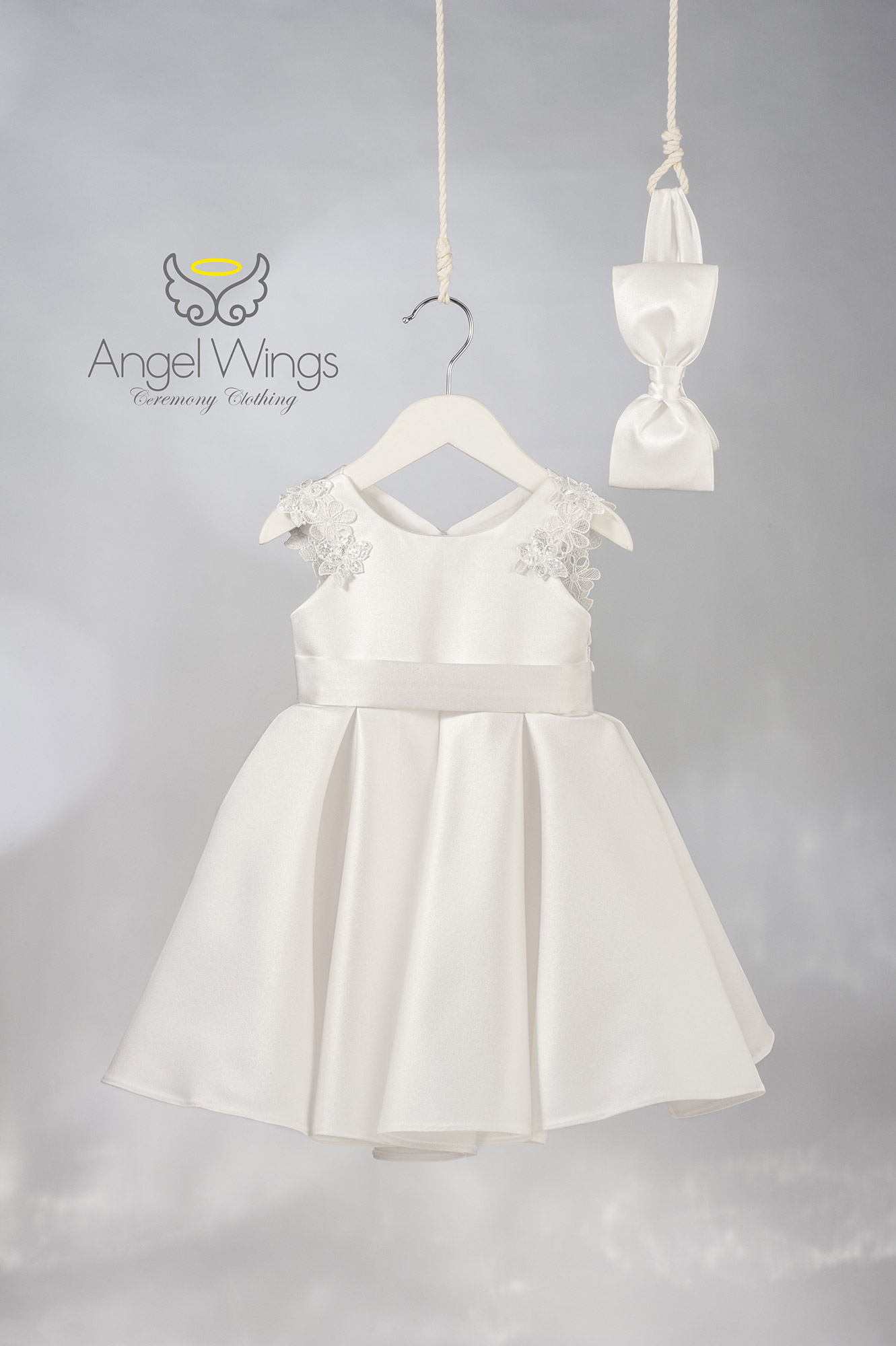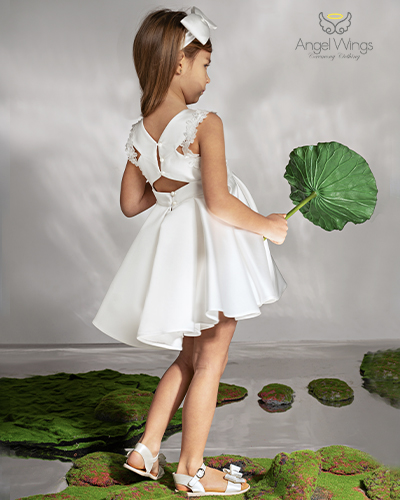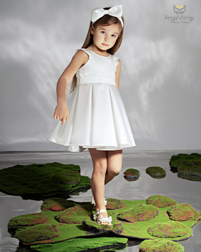 Το σύνολο συμπληρώνεται ιδανικά με σατέν κορδέλα μαλλιών διακοσμημένη με μεγάλο εντυπωσιακό φιόγκο, προσθέτοντας μια ρομαντική και πολυτελή πινελιά που ολοκληρώνει αρμονικά την εμφάνιση.