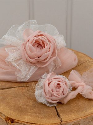 Απλό και όμορφο μαντό από βαμβακερό ανάγλυφο ύφασμα με κοντά μανικάκια από βολάν, ιδανικό για να συνδυαστεί με τα ρούχα της βάπτισης.
