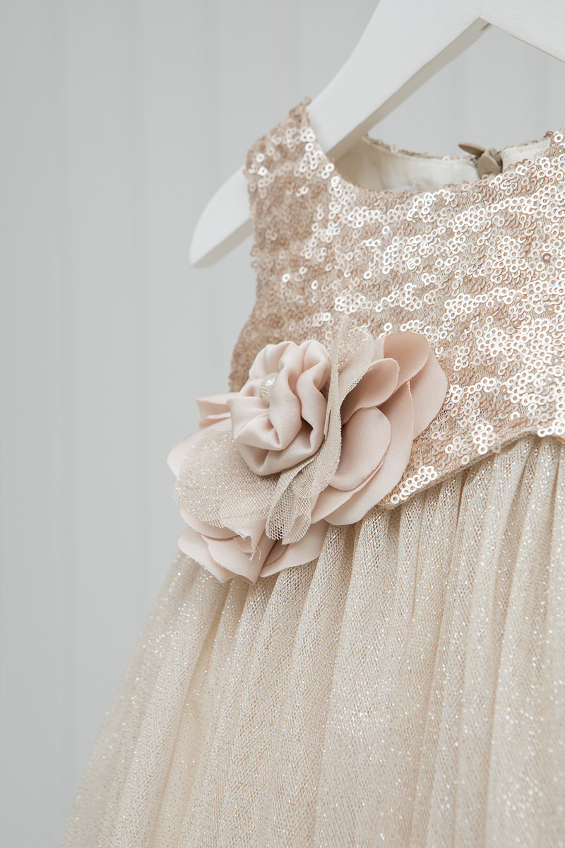 Το ρούχο ολοκληρώνεται με στόλισμα από χειροποίητο διακοσμητικό λουλούδι.