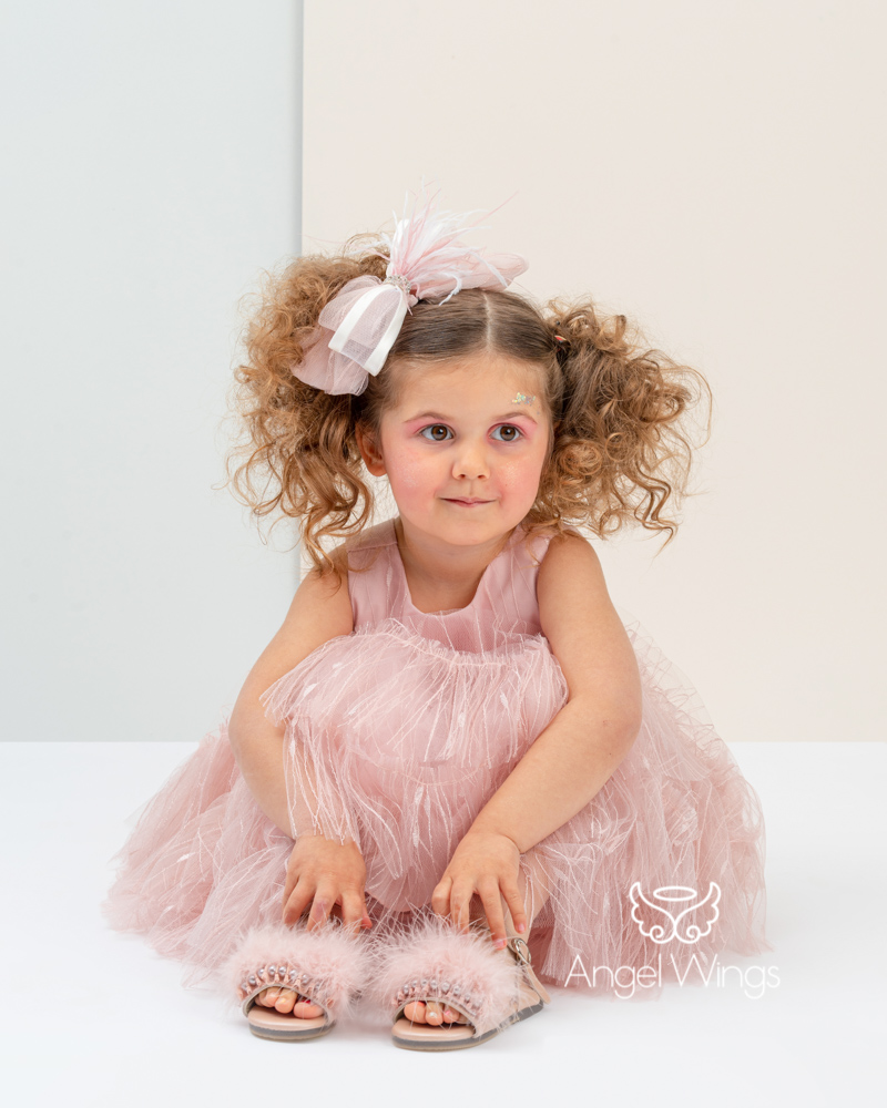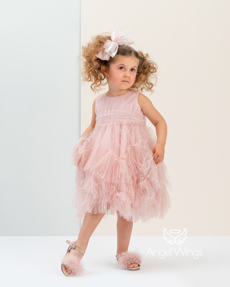 Το σύνολο ολοκληρώνει άψογα η κορδέλα-τουρμπάνι από το ίδιο τούλι του φορέματος με χειροποίητο στητό φιόγκο, φτερά κ στρας.