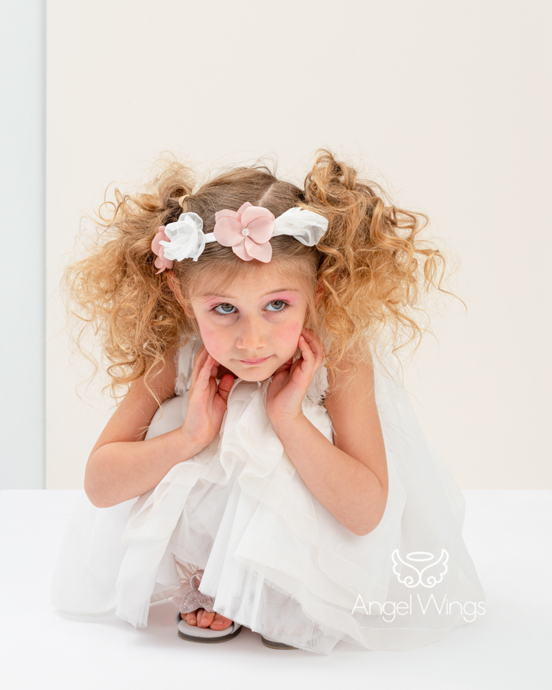 Κορδέλα-στεφάνι με χειροποίητα λουλούδια για τα μαλλιά σε off white-σάπιο μήλο χρώμα .
