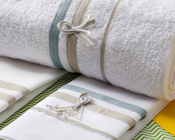 Βαμβακερό σετ λαδόπανων σε λευκό και ιβουάρ χρώμα σε δύο προτεινόμενες επιλογές.