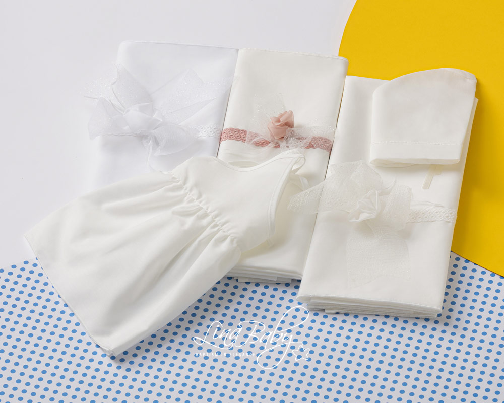 Βαμβακερό σετ λαδόπανου με διακοσμητική τρέσα Βroderies Αnglais σε Λευκό, Εκρού & Σάπιο Μήλο.