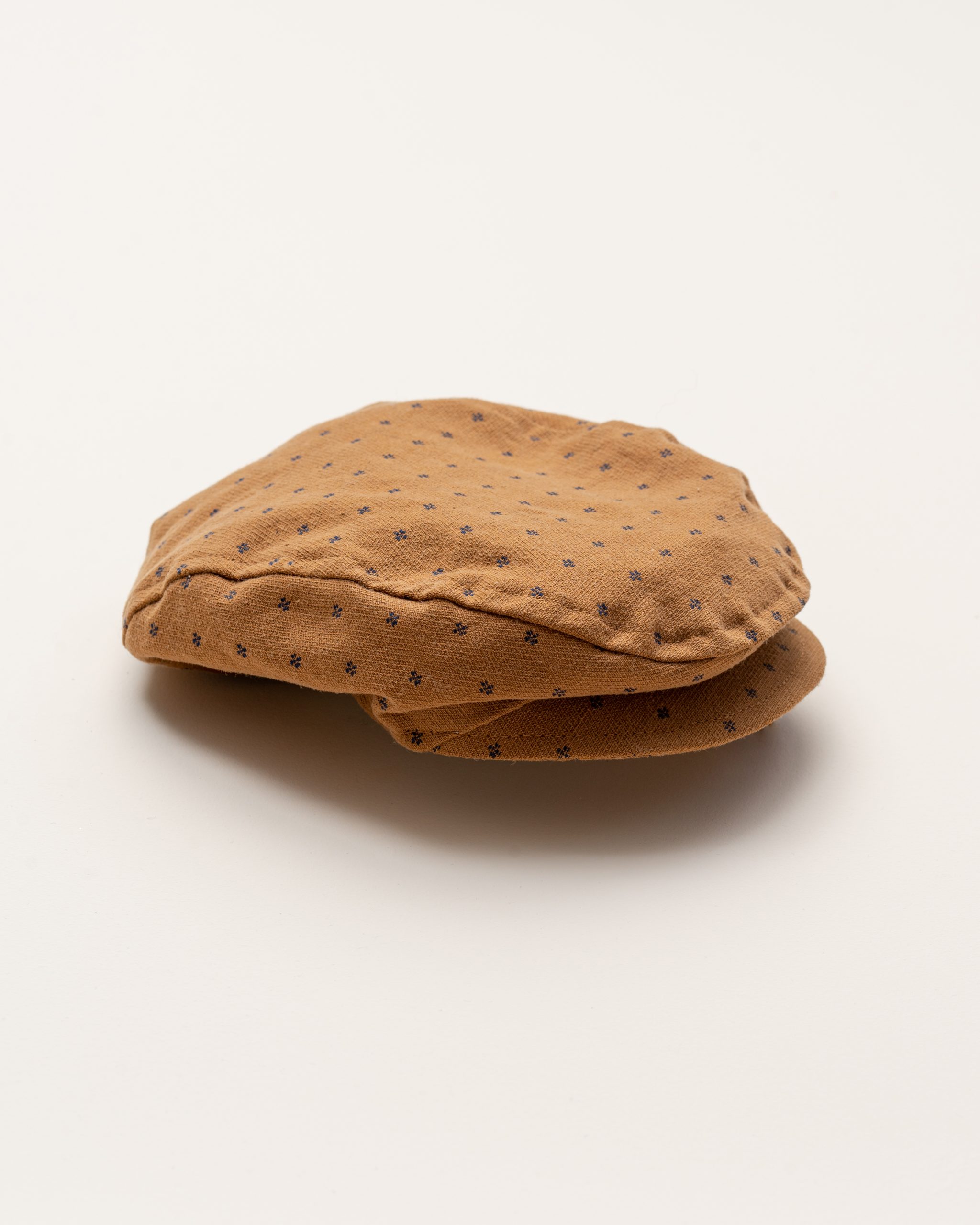 Τραγιάσκα μουσταρδί με μπλε μικροσχέδια.